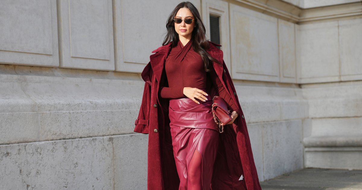 9. Luxe-Lookalike: This faux leather midi skirt is a rich-mom dream. The asymmetrical design adds an elevated touch to whatever you pair it with, while the extra bit of material hides what you want it to.