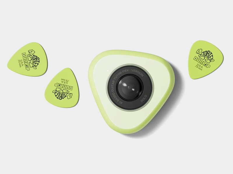 Designer Haneul Kang imagines the Piek, which is a technological tool developed to help users learn how to play the guitar. Powered by AI technology, the conceptual device functions as a tutor with a familiar guitar pick shape. It clips onto the guitar headstock and then integrates a camera with other smart sensors.