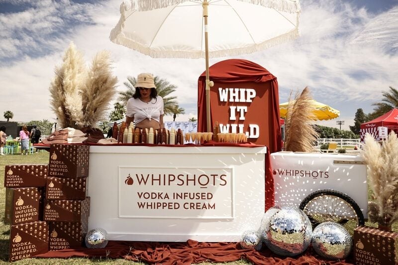 Earlier that day, Whipshots was also prominently featured at the 8th Annual REVOLVE Festival, where Cardi B took the stage for a dynamic performance. Throughout her set, she incorporated the product into her act, pausing at intervals to dispense Whipshots into the mouths of fans at the front of the stage—an interactive display that underscored the brand’s playful, celebratory identity.
