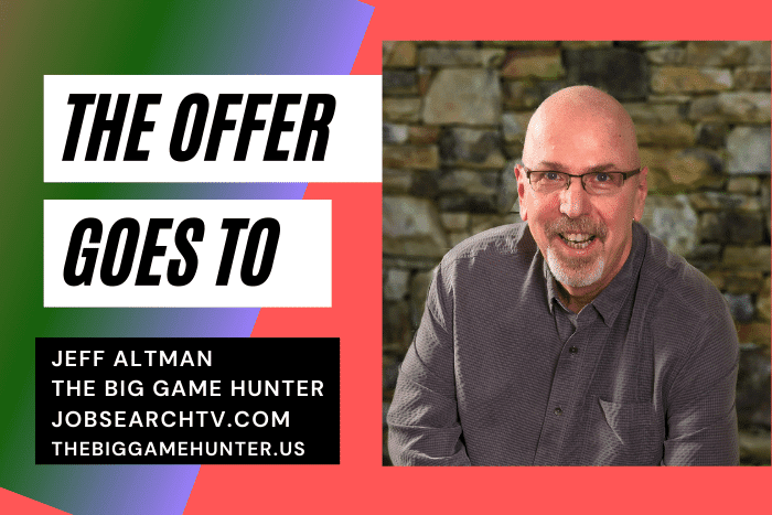 Jeff Altman, The Big Game Hunter is a coach who worked as a recruiter for what seems like one hundred years. His work involves career coaching, as well as executive job search coaching, job coaching, and interview coaching. He is the former host and producer of “No BS Job Search Advice Radio,” the #1 podcast in iTunes for job search with more than 3100 episodes.