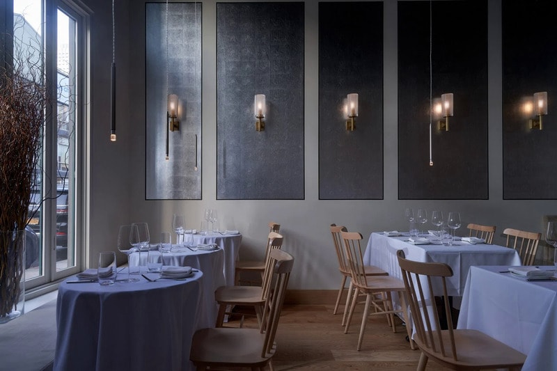 Mammoth founder Maryana Grinshpun told Dezeen about the project, “The focus was on creating an elevated experience; for example, [Meyers] explicitly asked for tablecloths. He also wanted us to find a way to bridge Williamsburg and a more rustic vibe that spoke to his Upstate New York roots, the location from which many of the ingredients would hail. We found this contradiction both challenging and inspiring, and it was the basis for how we thought about the project.”