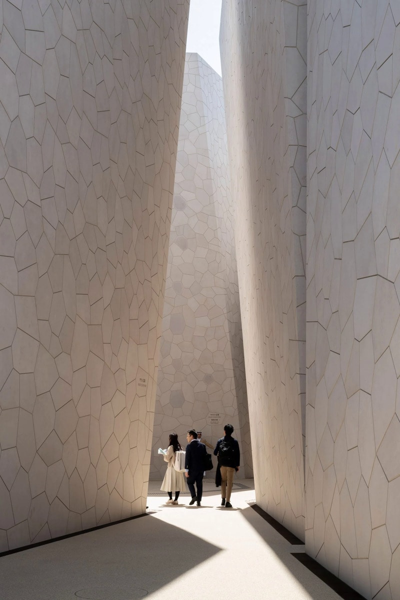 British design firm Foster + Partners has created the dynamic Saudi Arabia Pavilion defined by angular buildings linked together with street-like pathways. It is at the Osaka Expo and made in collaboration with design agency Journey — the idea was to imitate traditional villages. It is at the Grand Ring on Yumeshima island as it sections into a range of immersive experiences reflecting Saudi Arabia.