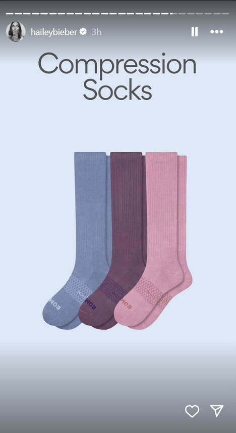 Bombas has launched its compression sock line in Canada following celebrity endorsement from Hailey Bieber, who recently highlighted the brand’s maternity-focused products on social media. The elevated basics company, which originally gained traction after discovering that socks rank among the most requested items by homeless organizations, has evolved into a comprehensive comfort-wear brand featuring seamless toe construction, honeycomb arch support, and performance cushioning designed for extended wear.