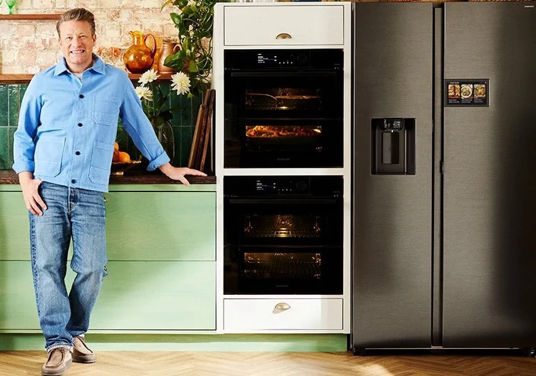Celebrity chef Jamie Oliver works in collaboration with Samsung on a new angle of home cooking with the special Bespoke AI kitchen line. The exclusive partnership takes the smart kitchen technology from the tech brand and integrates it with Jamie’s recipes.