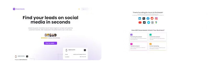 Dozenleads is a tool designed to extract contact details, such as emails and phone numbers, from a wide array of social media and online platforms. It supports data scraping from Google Maps, LinkedIn, Facebook, Instagram, Twitter, Reddit, YouTube, TikTok, Telegram, and Threads, making it a versatile solution for businesses looking to gather leads. By automating the process of locating and compiling contact information, Dozenleads helps streamline outreach efforts, saving time and improving efficiency.