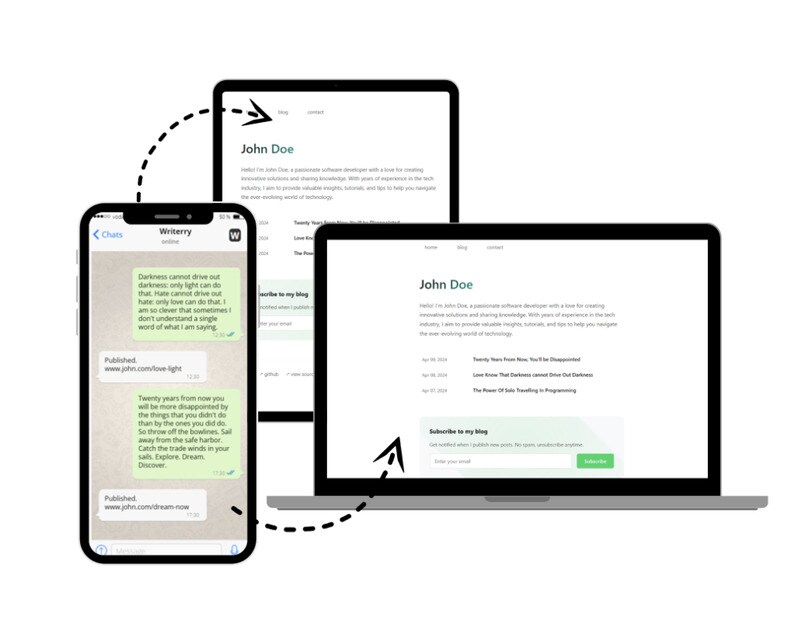 Writerry is a blogging tool designed for professionals who want to publish content without navigating traditional blogging platforms. It allows users to write blog content directly through WhatsApp, leveraging a familiar interface to reduce friction and save time. The service automatically transforms these messages into polished blog posts by handling formatting, SEO optimization, and publishing logistics.
