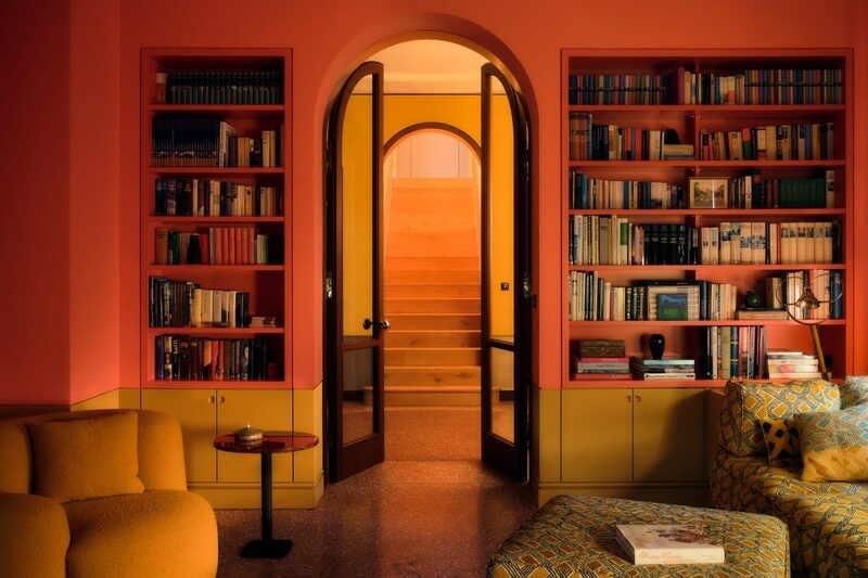 The renovation also emphasized craft: yacht‑inspired wood ceilings, custom terrazzo floors, and artisanal door handles by Belgian foundries. Pöppler merged bespoke furniture—such as his Baba chair and Celtic dining table—with carefully chosen classics, creating tactile interiors brimming with personality. Round arches and oval portals connect light-filled living zones to a revived garden and natural pool. This holistic redesign showcases how bold color, craftsmanship, and respect for heritage can coexist harmoniously in modern living.
