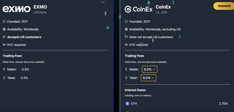 Crypto Exchange Comparators : EXCHANGE FIGHT