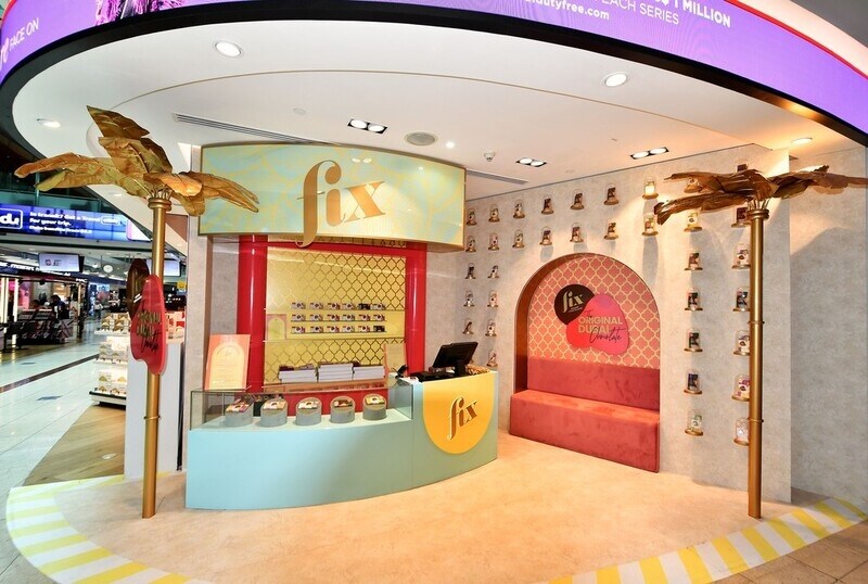 FIX Dessert Chocolatier’s pop-up concept at Dubai Duty Free introduces a refined and immersive experience that goes beyond traditional chocolate retail. Designed to captivate travelers, the activation combines premium dessert offerings with curated visual appeal, creating a boutique-like atmosphere within the airport environment.