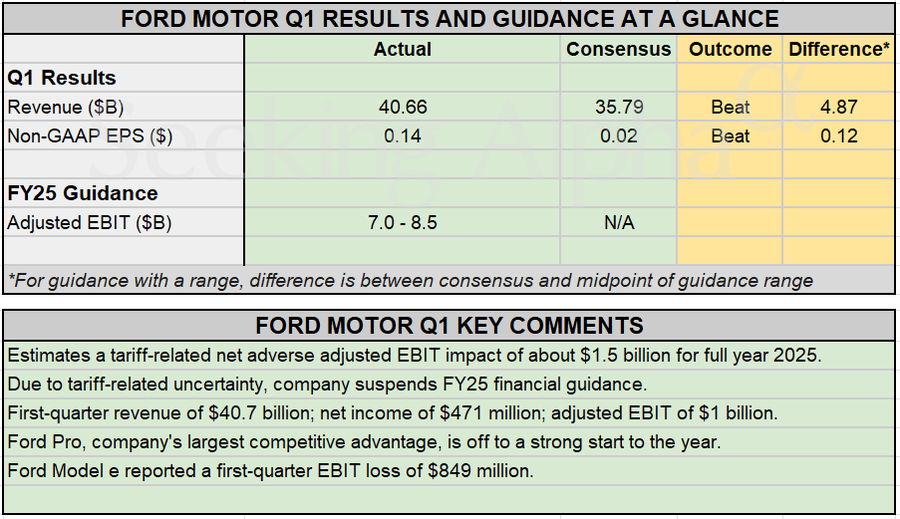 HomeMarketEarnings Snapshot: Ford Motor suspends FY25 financial guidance, tops Q1 estimates Posted in MarketEarnings Snapshot: Ford Motor suspends FY25 financial guidance, tops Q1 estimates May 5, 2025 Reporter Earnings Snapshot: Ford Motor suspends FY25 financial guidance, tops Q1 estimates Source link