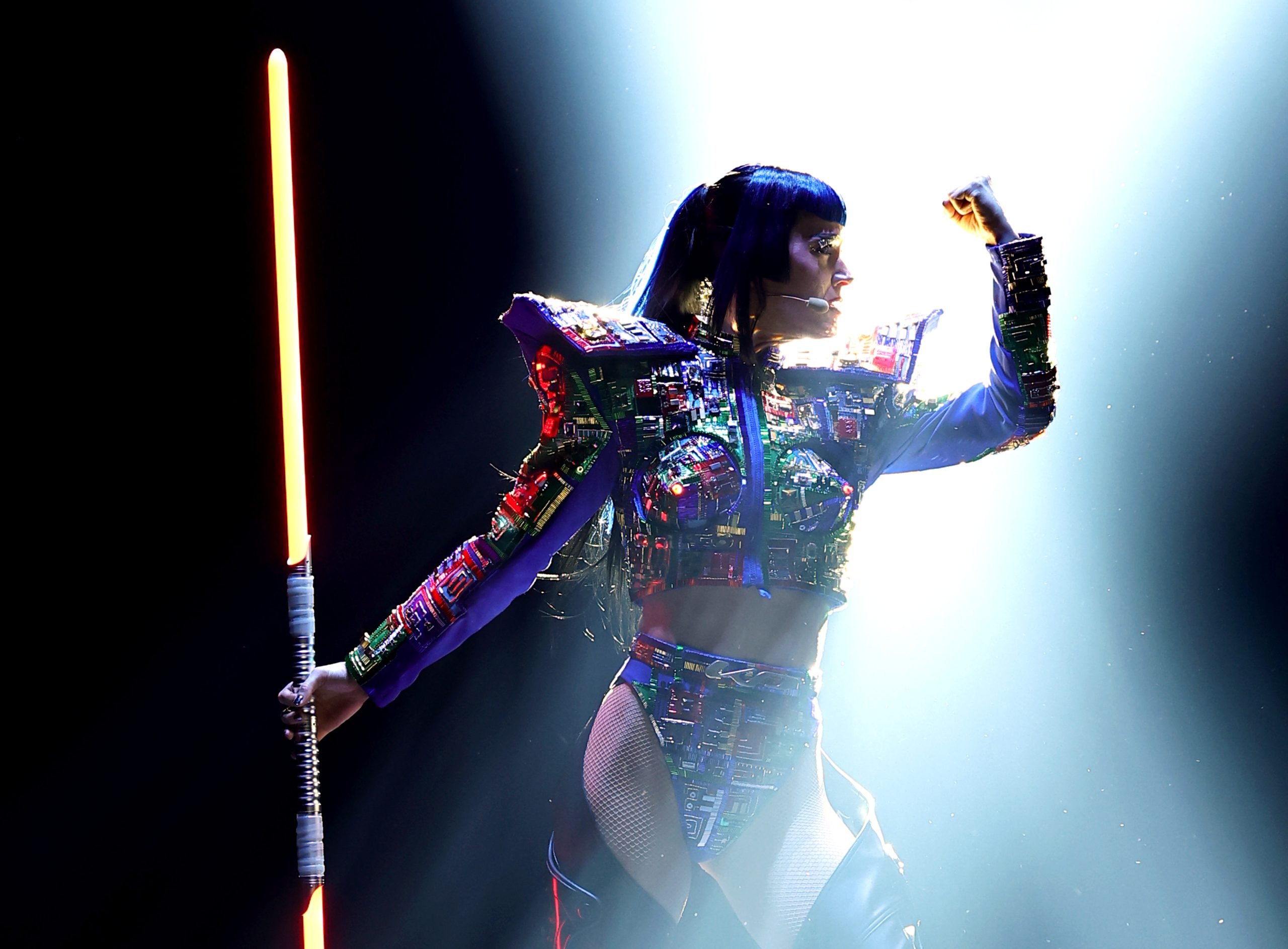 Later during this same concert, meanwhile, Perry called up two fans who arrived in blue spacesuits for her Lifetimes tour.