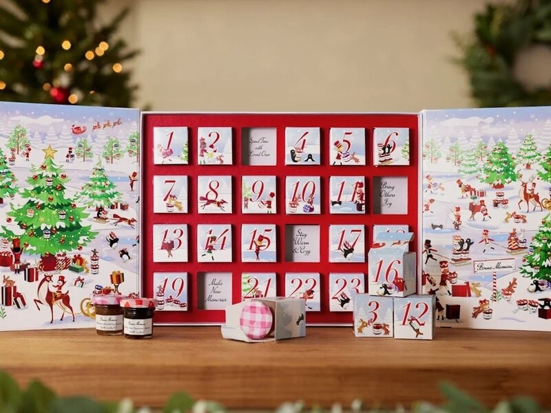 The Bonne Maman 2025 advent calendar is a cozy holiday ritual disguised as a treat-filled countdown. Behind each illustrated door awaits a limited-edition flavor like caramel-coffee, wild blueberry-maple, or mango-ginger, packaged in a one-ounce jar that feels as collectible as it is delicious. With only two allowed per customer and a history of selling out since 2017, this $55 calendar blends rarity with charm. Elves, penguins, and snowy trees add whimsy to the packaging, making the unboxing experience as sweet as the contents inside.
