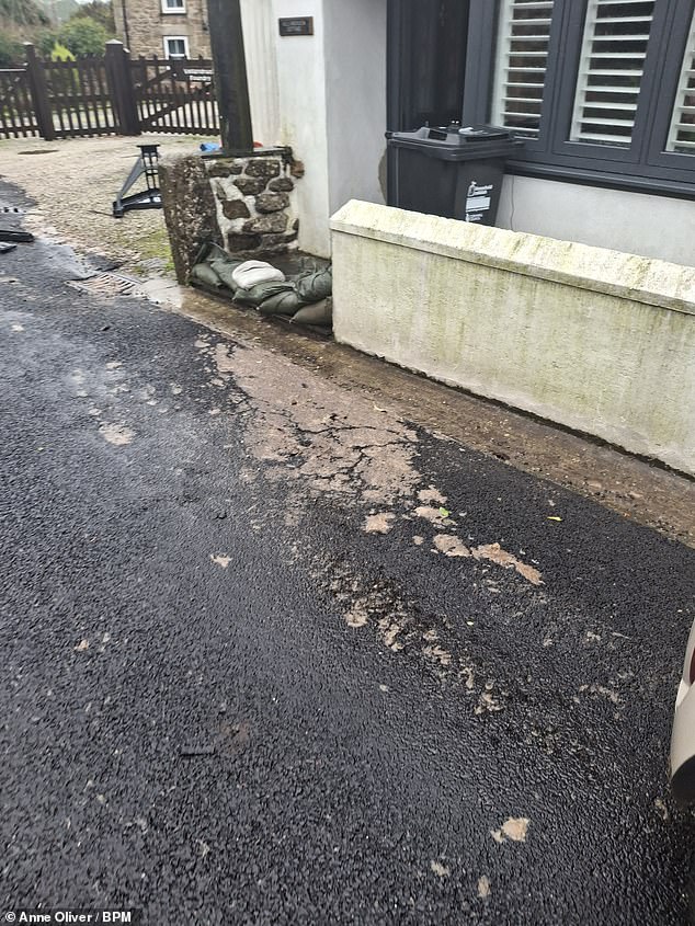 Ms Oliver continued: ‘In January we had two weeks of dry weather and we thought that was it. But since the storm (Storm Goretti) we have sewage outside our homes. Some people have had it in their homes.