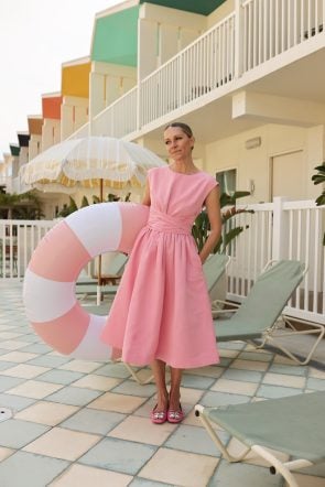 Today I want to highlight the bow dress. This is my personal favorite style in the collection. It can be dressed up and dressed down. It comes in three incredibly versatile colors and the sash can be tied SO many fun ways. I created a little video of just a few of the ways – but it also looks so chic with the sash tied in the back, keeping the front clean!