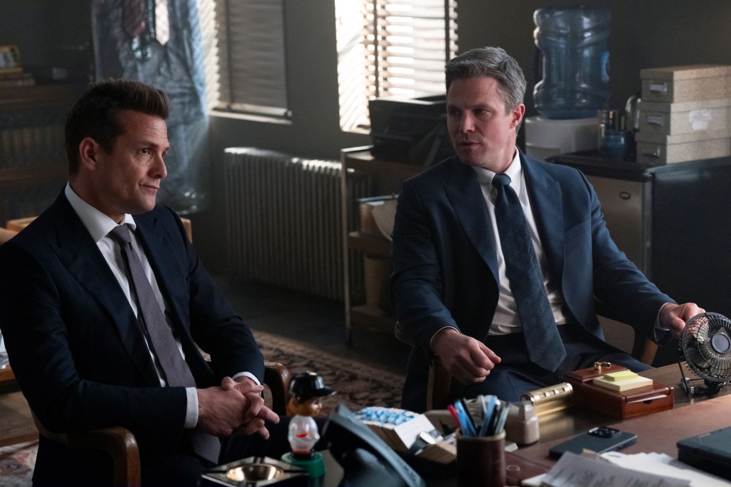 During a chat with Macht in March, he shared that he carries Harvey inside him and sometimes channels the character when the moment calls for it. Although he thought he would never play Harvey again after the series concluded, Macht was compelled to support show creator Aaron Korsh on his new endeavor because, creatively, it made sense. It’s the official melding of these two Suits properties, further converging with the return of Daniel Hardman (David Costabile) in tonight’s episode and Rick Hoffman as Louis Litt in an upcoming episode. Unfortunately, Macht did not reunite with either of his former co-stars this time around, but if NBC picks up a second season, the possibilities are endless, I’ve been told.