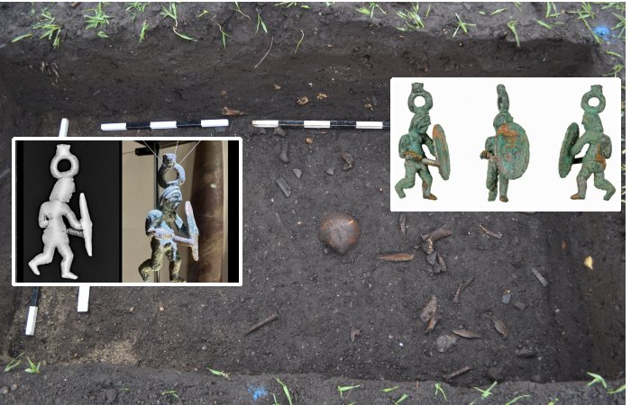 “This small bronze warrior resembles something from Asterix and Obelix; however, it is genuine.” Unearthed in a trench within the settlement, experts speculate that the figure may have served either decorative or ceremonial functions. Its design suggests it could have been suspended as a pendant due to the presence of a small loop on its head,” said Mathias Pfeil, General Conservator at the Bavarian State Office for Monument Preservation.