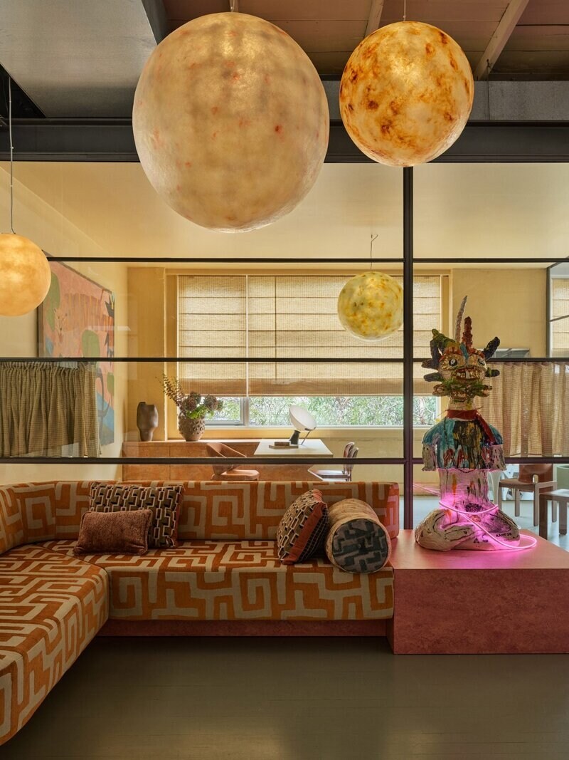 YSG transforms the Alémais office in Sydney into a captivating space defined by custom-crafted globe pendant lights that float above work areas. These fixtures create an ethereal glow, casting textured reflections across rooms and emphasizing a celestial, immersive ambiance. Carefully placed, they guide circulation and highlight focal points, turning lighting into both function and sculpture.