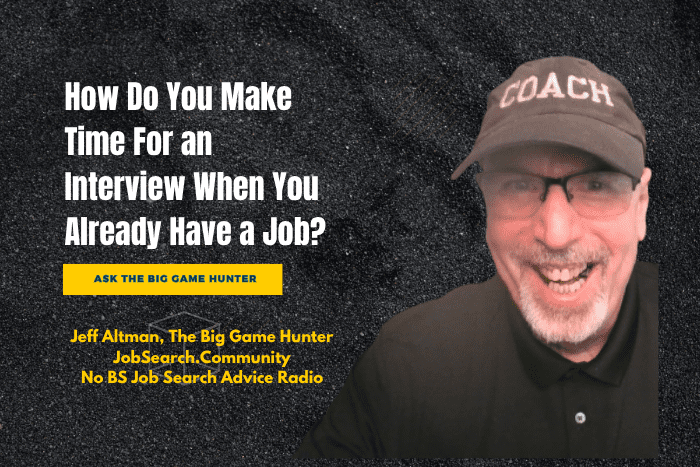 So, the question for today is, “how do you make time for an interview when you already have a job? Now, more and more people are doing phone interviews, more and more companies do phone interviews initially as part of their process. So I’m not going to address that. I think you all are pretty bright and can handle that without me.