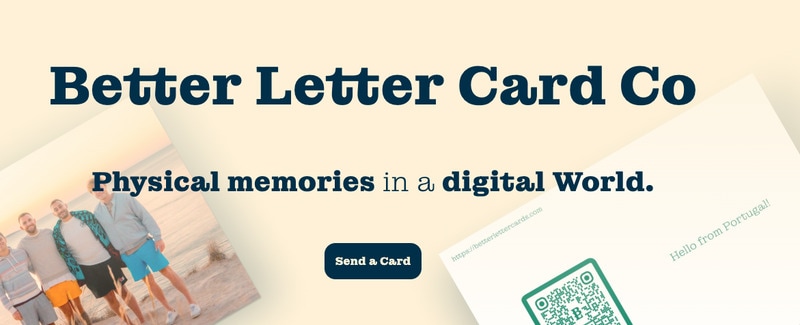 Better Letter Card Co offers a hybrid solution at the intersection of physical mail and digital content. The service enables users to send personalized postcards using their own photos and videos. Users select a photo for the front, attach a video to generate a scannable QR code on the back, choose recipients, and send — all within a streamlined process.