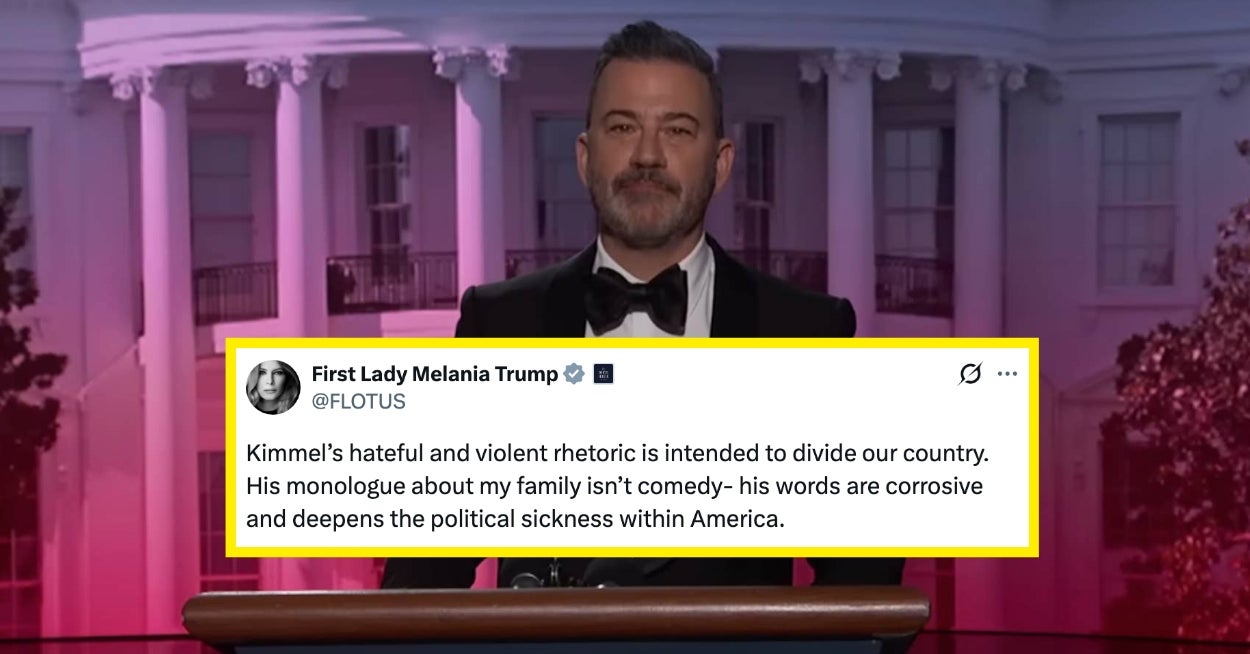 HomeEntertainmentJimmy Kimmel Pointed Out The Obvious Hypocrisy In Melania Trump Calling For Him To Be Fired Posted in EntertainmentJimmy Kimmel Pointed Out The Obvious Hypocrisy In Melania Trump Calling For Him To Be Fired April 28, 2026 Reporter “It was a very light roast.”View Entire Post › Source link