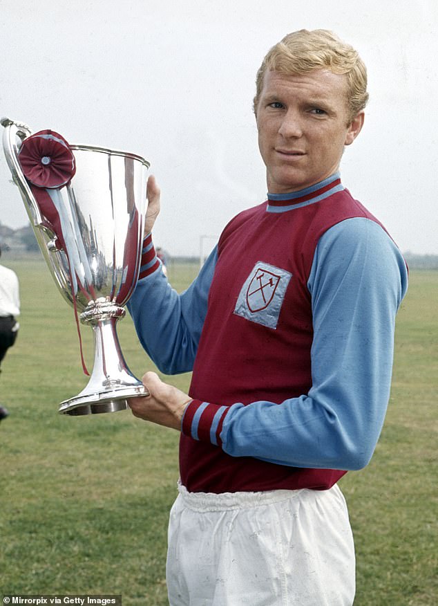 Bobby Moore is seen with the European Cup Winners’ Cup trophy in August 1965