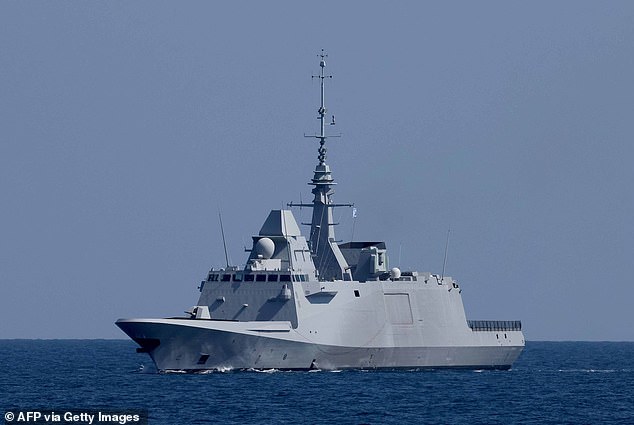 The French president also cited a strike on a British air force base in Cyprus on Monday, saying: ‘This requires our support. That is why I have decided to send additional air-defence assets there as well, along with a French frigate, the Languedoc.