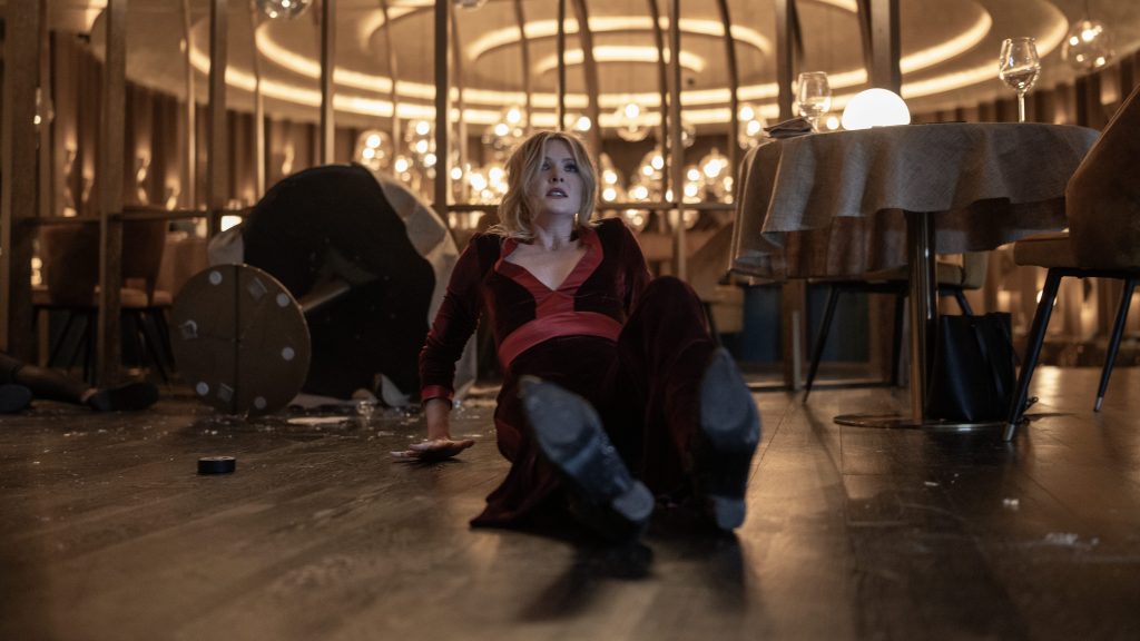 The extravagant sky-high restaurant set is the perfect playground for Landon, utilizing every inch of the space to illustrate the claustrophobic horror of the date through Violet’s perspective. Meticulous angles and lighting are also used to beautifully elevate the tension.