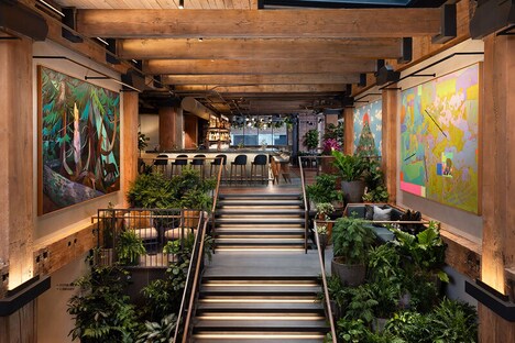 Populus Seattle blurs the line between interior design and nature by drawing direct inspiration from the landscapes of the Pacific Northwest. Created by HKS and Harwell Godfrey Studio, the hotel’s design weaves together the textures, tones, and silhouettes of forests, shorelines, and native flora. From the moment guests enter, they’re met with curved walls, soft wood grains, earthy palettes, and sculptural lighting inspired by branches and leaves. The goal wasn’t just to decorate with nature, but to make guests feel immersed in it.