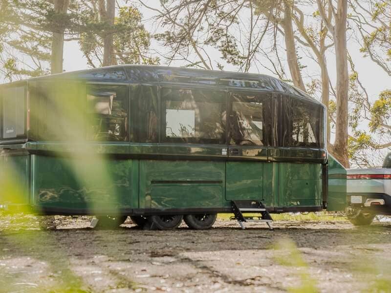 The Lightship AE.1 electric travel trailer sets itself apart from the competition with its well-appointed interior that offers all the comforts of home alongside ample sleeping areas. The trailer is also packed with technological accoutrements for monitoring performance and more.