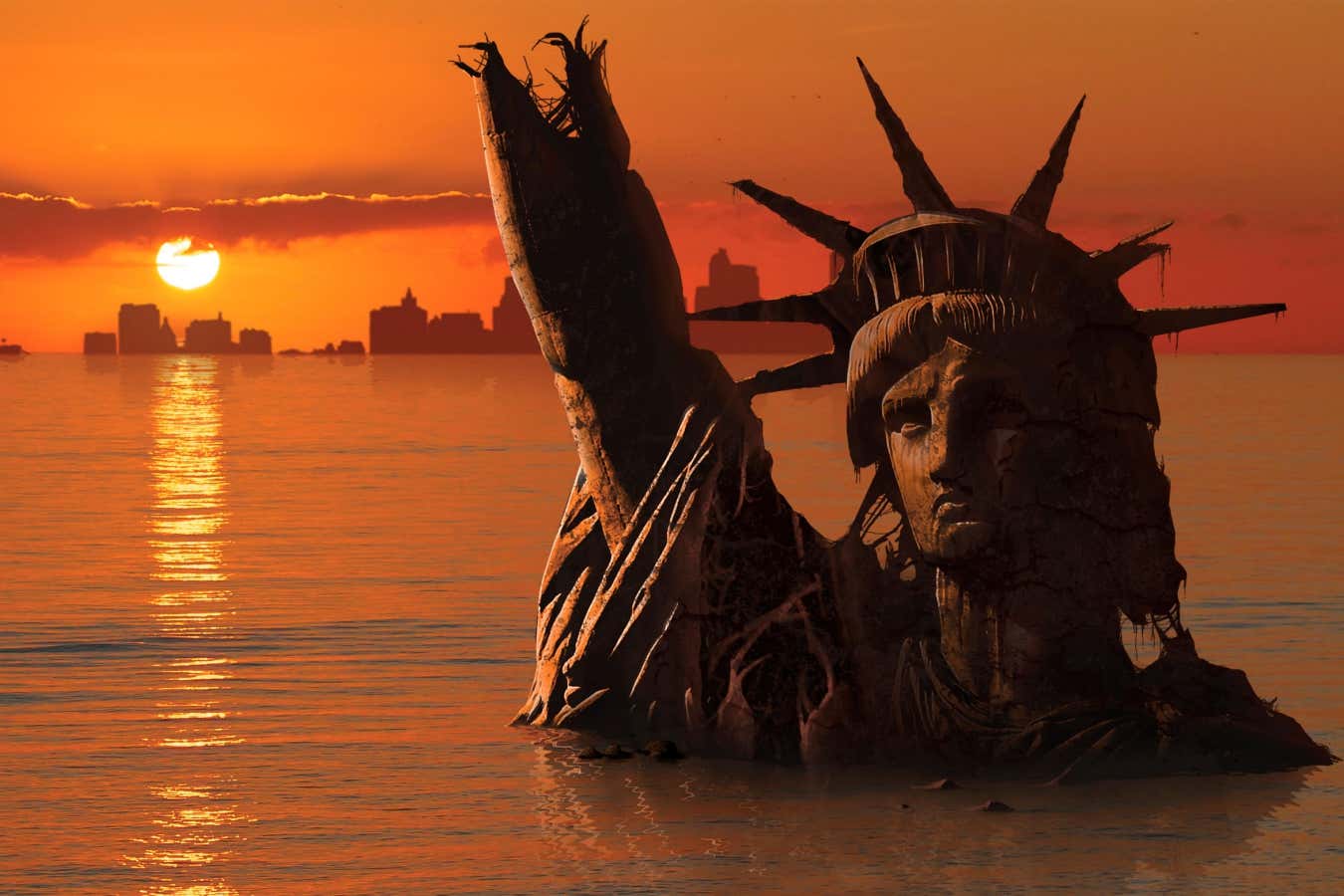 And that was precisely where Dengue Dying had landed, ruining the tourists’ fun. Picture the scene: on this imposing slab of ice, one-hundred-twenty-one feet long and fifty-five wide, which crowned the terrace of the twenty-floor cruise ship with a direct view of the pristine, burning sea, huge crowds of visitors had flocked to try out a unique experience, quite possibly for the first time—a journey through time to another geological era, since these spectacular landscapes did not exist naturally anywhere on Earth. It was not only an opportunity to skate with the unmistakable and elegant stride of ice skates on a frozen sheet, but to do so at sub-zero temperatures, since the atmosphere in which the rink had been installed recreated the feel of the harsh winters of old New York, long flooded and submerged beneath the waves. On top of that, it was Christmas, international tourism’s busiest and most eagerly awaited season. And so, as the carols rang out, enthralled tourists clad in heavy coats moved like swans gliding over a terra incognita, this white rectangle whose temperature was sustained by the herculean efforts of extremely powerful refrigerating machines, a surface of artificial ice decorated with flags of all the countries from before the Great Thaw, opposite a monumental, pure gold statue of Prometheus stealing fire from the gods, for the rink was an imitation of the long-vanished one at Rockefeller Center, in old New York, also many leagues under the sea now.