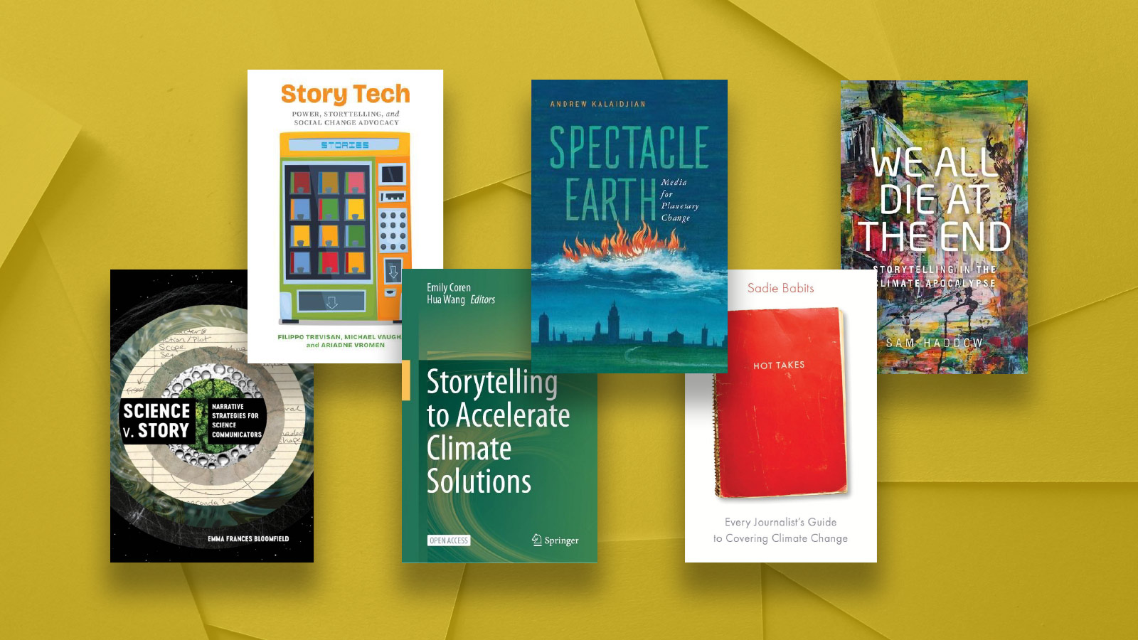 The next four titles offer more traditional plots. “Science v Story” and “Storytelling to Accelerate Climate Solutions” explain how stories function within science and advocacy. “Hot Takes” and “Spectacle Earth” present the standpoints of journalists and artist-activists.