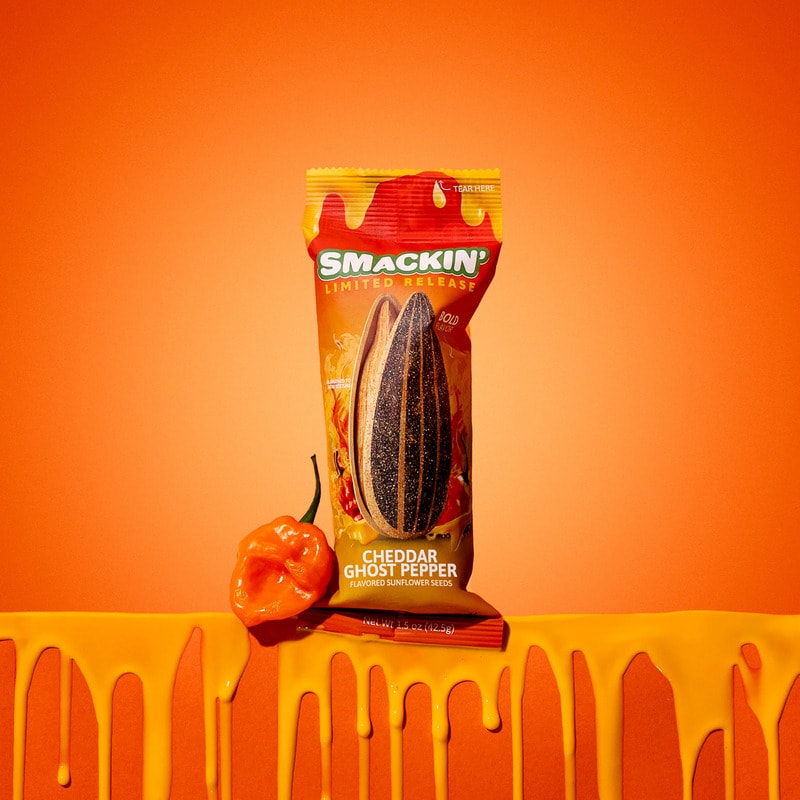Many flavored sunflower seed snacks lean toward spicy-sweet profiles, but Smackin’ Cheddar Ghost Pepper takes it to the next level as a limited-edition flavor that amps up the intensity and goes all in on heat. This snack made with jumbo sunflower seeds boasts “a bold punch of creamy, cheesy goodness followed by the fiery kick of one of the world’s hottest peppers.”