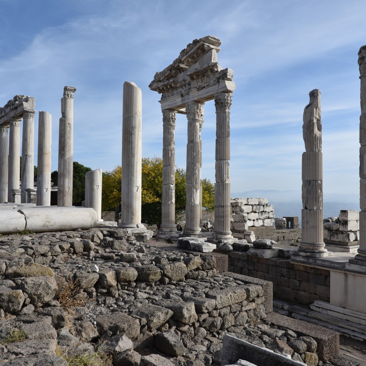 The Trajaneum was completed under Hadrian, likely in the year AD 129. Hadrian made significant changes to the temple’s precinct, adding the colonnade enclosing the temple. During excavations in the late 19th century, fragments of an inscription were found in the vaults of the Trajaneum substructures. The inscription was a copy of a letter written by Hadrian in AD 137. In the letter, Hadrian refused permission for Pergamenes to build a temple for him but agreed to have his portrait erected in the temple of his father. His disapproval was based on the fact that the city had already been granted two imperial cult temples (Burrell, 2004).