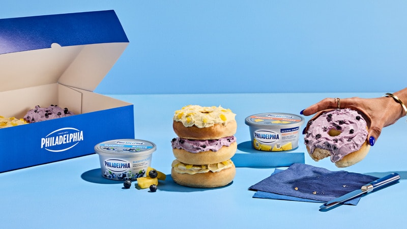 Philadelphia Cream Cheese debuts the ‘Bonut,’ a creative reimagining of two beloved breakfast staples—bagels and donuts. This inventive offering coincides with the launch of the brand’s newest sweet cream cheese flavors, ‘Blueberry’ and ‘Pineapple.’ Featuring Philadelphia’s signature creamy texture and real fruit pieces, the flavors are presented atop an uncut bagel, delivering a novel twist on a familiar favorite.