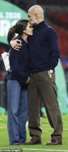 Pep Guardiola lingers for a sweet moment with daughter Maria on the Wembley pitch as he weighs up whether to QUIT Manchester City despite Carabao Cup final success