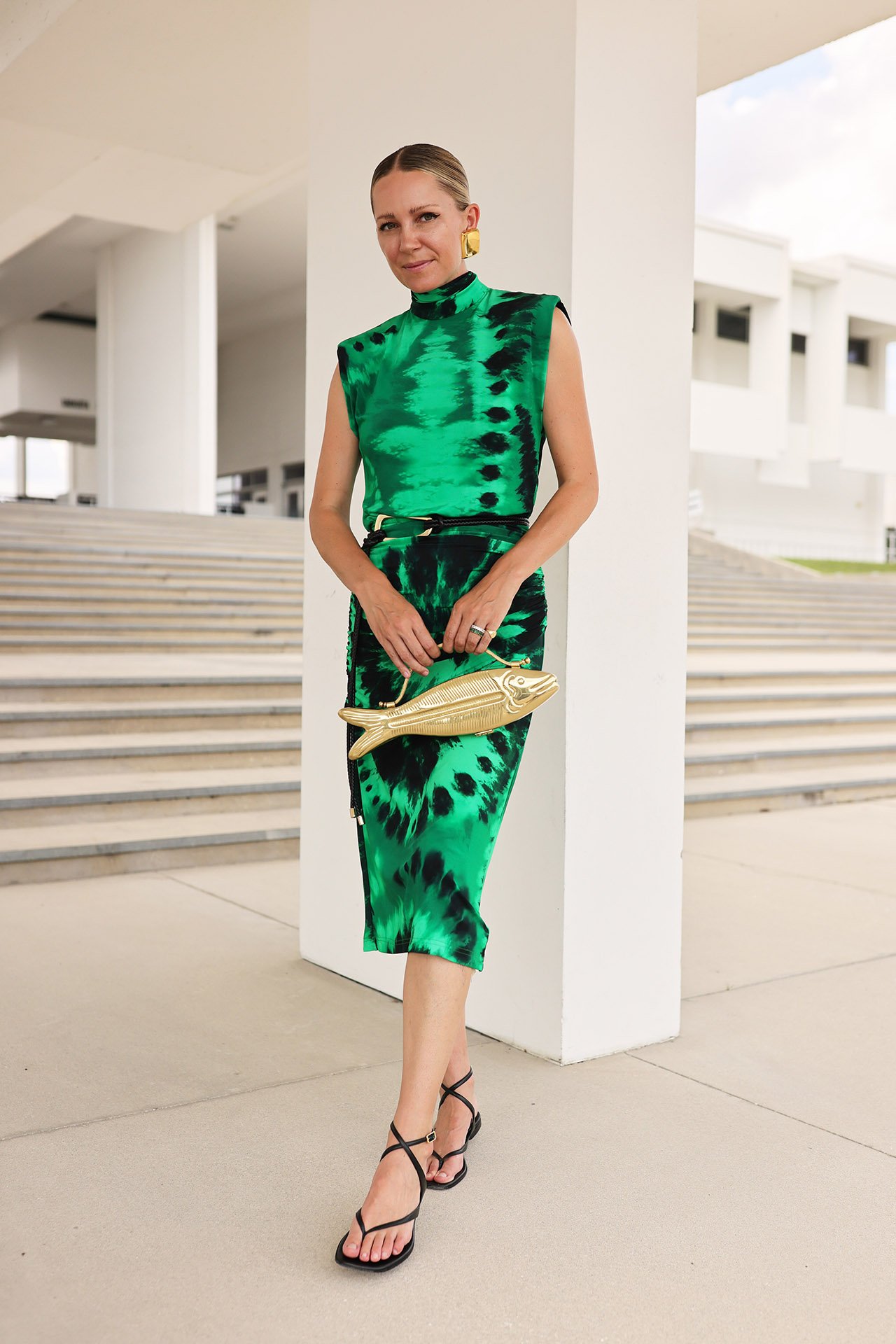 Dress: Johanna Ortiz // Sandals // Bag: Vin // Earrings: Saint Laurent // Belt: Mango (old)