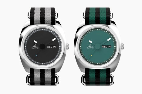 The Timex Q Timex 1975 Enigma timepiece has been launched in two new color options to help elevate the classic accessory from simple to chic. The watch follows on the original model’s distinct space-age aesthetic with hands that appear to float above the dial, which is finished in black and green options to choose from. The timepieces are powered by a quartz movement, just like the original, which is held within the 37mm stainless steel case.