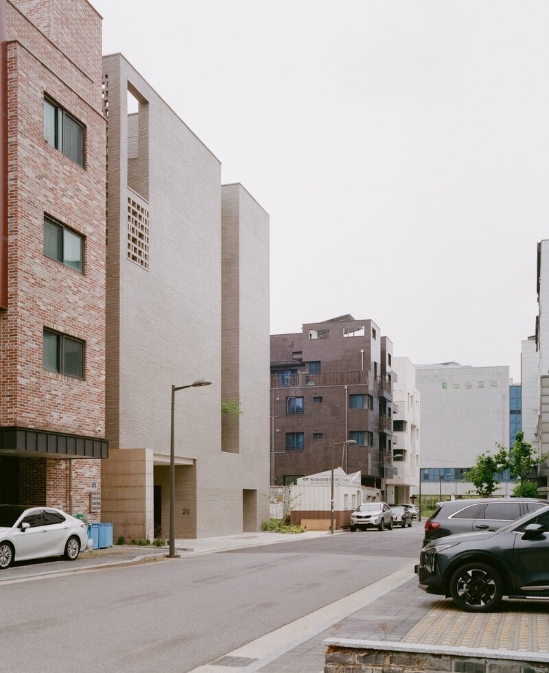 The name suggests that the material palette is made up of stone, timber, and concrete. Oliver Chiu, the founding director of the firm, wanted to open the block up on the south. This way, the traditional Korean idea of borrowing landscape would be brought into the Raw house. Chiu explains, “We wanted to offer residents an experience of nature not as a backdrop, but as a spatial and emotional presence.”