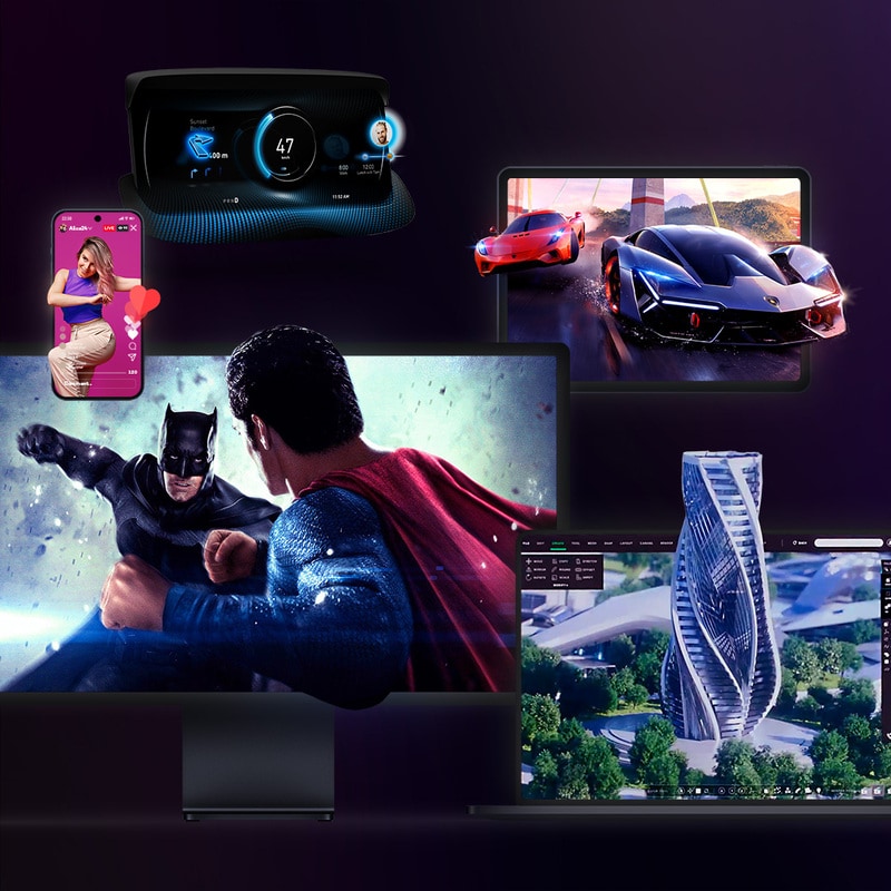 The versatility of Leia Inc.’s transitional display technology allows integration across various devices, including mobile phones, tablets, laptops, and large-format displays up to 32 inches. LeiaSR™ is also compatible with both LCD and OLED panels. Major electronics manufacturers have already adopted this solution.