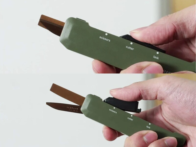 The Hakoake Portable Scissors by Kokuyo is a brilliant design that is a two-way cutter and miniature scissors all at once. What makes it stand out the most is the sliding mechanism, which allows users to switch between a cutter tool or scissors just with a light squeeze and a simple slide.