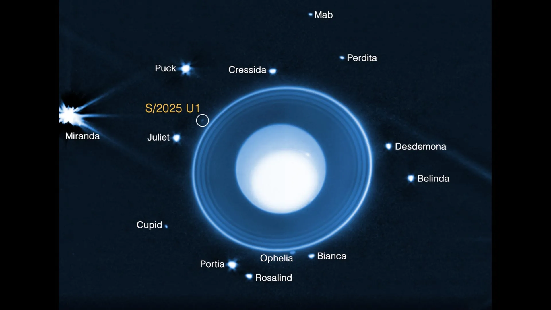 “As part of JWST’s guest observer program, we found a previously unknown satellite of the ice giant, which has been provisionally designated S/2025 U 1,” said El Moutamid, a lead scientist in SwRI’s Solar System Science and Exploration Division in Boulder, Colorado. “This object, by far the smallest object discovered to date, was detected in a series of 10 long exposures obtained by the Near-Infrared Camera.”