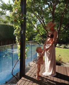 On another, a scantily-clad ‘influencer’ wearing a leather bikini posed for photos next to the pile of yellow flowers and condolence messages left outside the property.